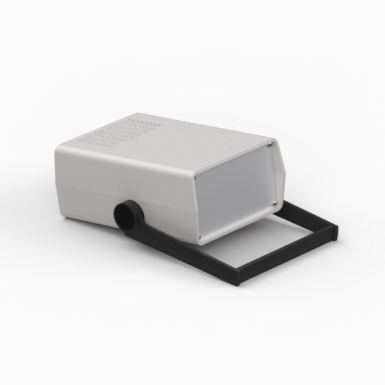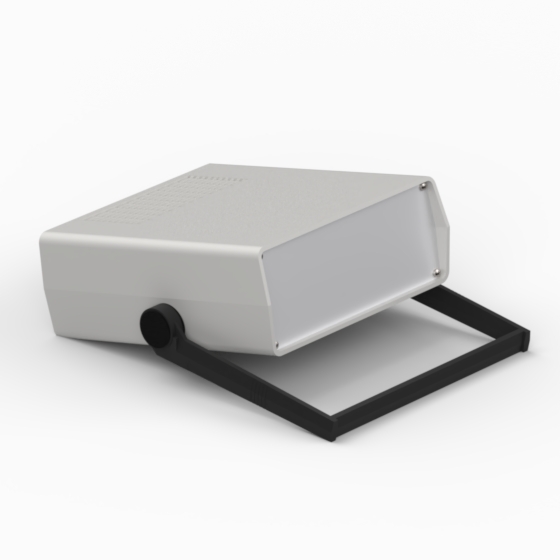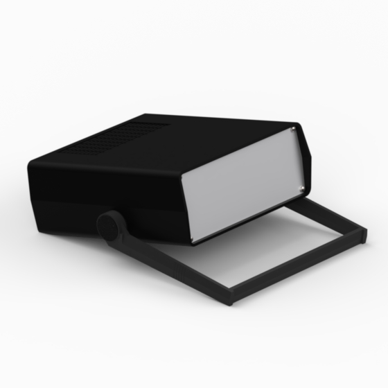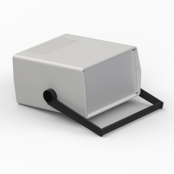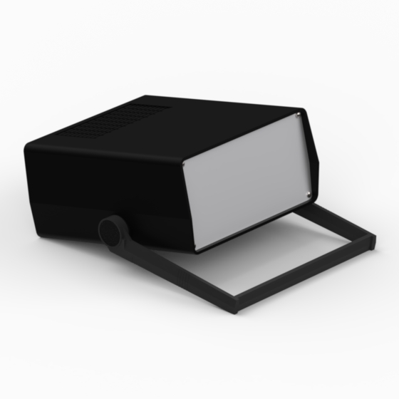 Contenitori in ABS con superfici opache dotati di maniglia con otto diverse inclinazioni e due pannelli frontali in alluminio di spessore 1 mm. I gusci superiori ed inferiori sono dotati di una foratura per aerazione e sono dotati all’interno di punti di fissaggio per PCB. Chiusura a otto viti.