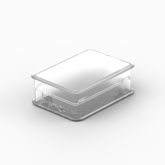 Contenitore per Beaglebone-Black stabile e funzionale, dalla forma squadrata e dal design moderno, che garantisce un perfetto assemblaggio di fondo e coperchio a protezione della scheda. Stampato in materiale autoestinguente (ABS + PC), è perfetto sia per uso personale che per impiego professionale. Disponibile in tre colori (nero, bianco, trasparente). Guide luminose a LED sulla parte anteriore. Fessure di aerazione sul perimetro della base. Chiusura snap-on. Accessori: Vesa mount adapter (RPI-VESA).