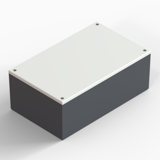 Contenitori in ABS con spigoli vivi e pareti con superfici lucide all’interno delle quali sono presenti guide per PCB. La serie “CP” ha un pannello di chiusura in ABS sempre in colore grigio chiaro. Chiusura a quattro viti.